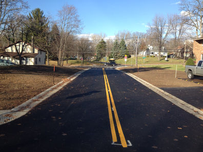 The project objective was to improve traffic safety and access to commercial properties along the busy NYS Route 441 (Penfield Road) corridor in the Four Corners area of Penfield. The existing Motts Lane acted as an access road behind businesses on Penfield Road, but was a dead-end roadway. The project extended Motts Lane westward and northward from its existing western terminus, to intersect Penfield Road across from Liberty Street. An island at the intersection with Penfield Road restricts left turns into or out of Motts Lane to enhance safety and reduce the likelihood of cut-through traffic. A retaining wall was installed along a portion of the roadway to preserve parking lot spaces on the north side of the road without impacting wetlands to the north of the road.